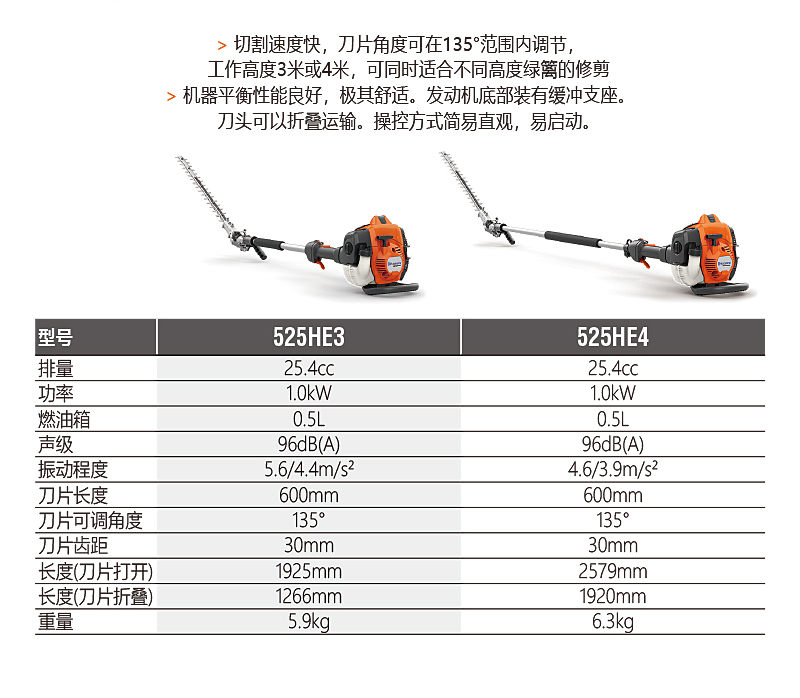 > 切割速度快,刀片角度可在135°范圍內(nèi)調(diào)節(jié),工作高度3米或4米,可同時適合不同高度綠籬的修剪。